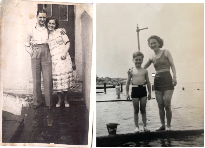 My parents at home in Islington, London in 1942 and Mum and I on the beach in 1949, aged 6.