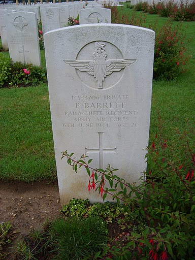 Sadly, I have no other information on Peter Barrett, neither his early or teen years but he was to find himself fighting on D-Day and laid down his life for our freedom. He served with the 7th Battalion, Parachute Regiment on D-Day and he found himself in the middle of the greatest struggle for our survival. They took off from RAF Fairford in the evening of 5 June 1944 as part of Operation Tonga (6th Airborne Division's parachute and glider assault in the early hours of D-Day).